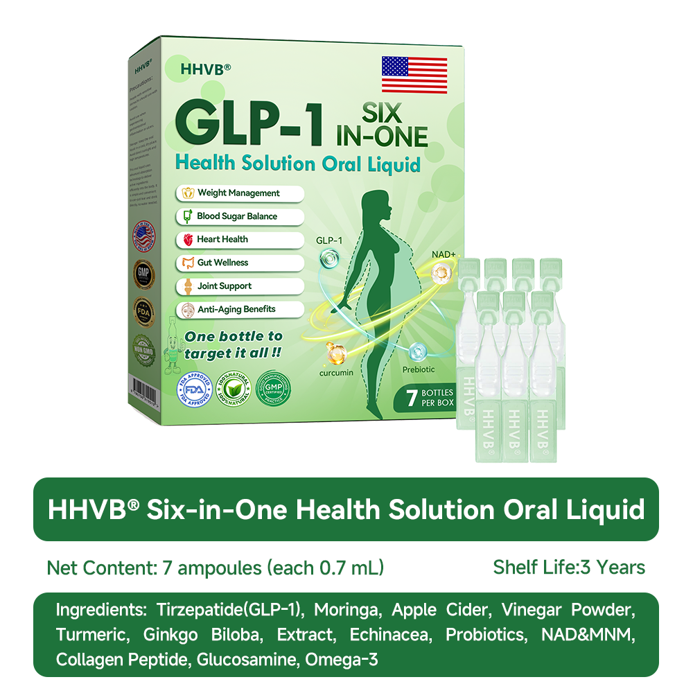 HHVBยฎ GLP-1 Six in One Health Solution Oral Liquid was developed by a team of over 30 experts in international endocrinology and diabetology after more than 3 years of research. It combines Tirzepatideย with powerful herbal ingredients to boost metabolism, accelerate fat burning, and support digestive and lymphatic health. This oral solution has been approved by the U.S. Food and Drug Administration (FDA) for its safety and efficacy, offering a scientifically backed solution for weight loss and overall wellness.